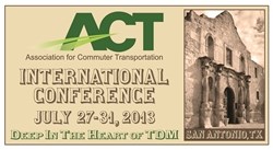 The Association for Commuter Transportation (ACT) International Conference heads to the Lone Star in 2013, arriving in San Antonio, TX. You'll want to join your transportation demand management colleagues and attend the intensive professional development training sessions, special sessions and our vendors featured in our Exhibit Hall. The entire conference is held at the Grand Hyatt San Antonio that offers excellent conference rates and premier amenities.