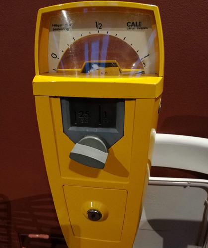 The National Museum of Sweden has reopened after a 5 year renovation and with it, a Cale (now Flowbird) single-space parking meter proudly on display.