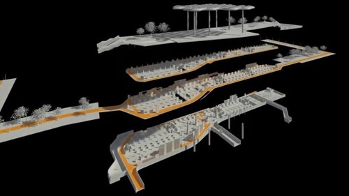 The parking facility will have 3 floors. Eventually the City hopes that all the bikes are out of the streets and squares and into bicycle parking facilities, giving the city a cleaner look.