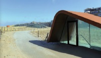 This remarkable parking garage is barely visible from the roadside, just a dipping driveway and a few parking signs, yet when you look back at it from the coast it’s lines not only compliment the beautiful sea side setting, it provides protection against dune erosion.