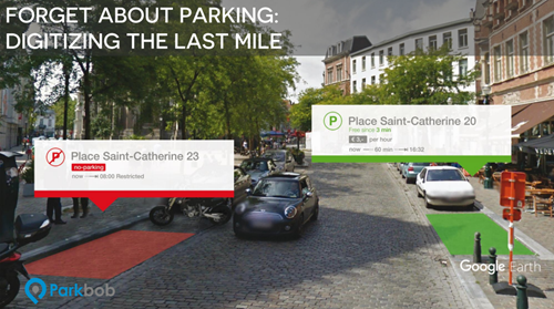 Parking in cities is a hassle. It takes a lot of time, money and nerves. The average driver spends 10 minutes to look for a parking spot, with total costs of €450 per year. Currently, detailed information on on-street parking options, restrictions and pricing is not available or extremely fragmented in the digital world. The navigation process in a car ends with a destination address, but does not cover the whole end-to-end process. With the vision of a connected or autonomous car, it is clear that the entire process needs to be digitally supported. Parkbob focuses on the missing component to create a seamless last-mile experience.