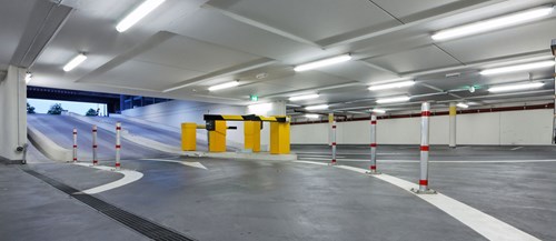 induction loop detectors, barrier and door control units as well as UHF Long Range Readers control access to the parking area. Electronic counting devices detect vehicles or free spaces and RFID payment systems provide contactless payment at the parking ticket machine or directly at the exit terminal.