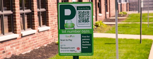 Clear signs are physically placed in a parking lot to indicate when a spot is available. To pay with a smartphone drivers scan a QR-code. Since there is no download FlexePark can be used with older smartphones, and is accessible to all visitors.