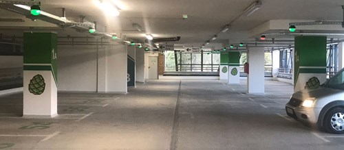Parking space occupancy detection system and visual guidance. The main advantages of this system are very fast guidance of the driver to the parking place. The benefits of the system are lower emissions in closed garages.