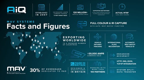 MAV Systems Ltd are a world-leading independent ANPR camera manufacturer with more than 30 years of design and development experience. Supporting optimised ANPR infrastructure across sectors and international regions, MAV’s products are a core component within Law Enforcement, ITS, Traffic Enforcement, and Parking Management systems.
