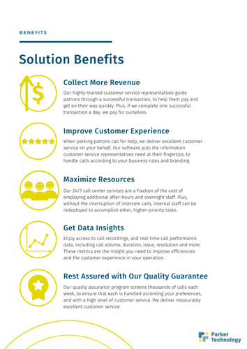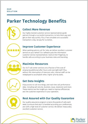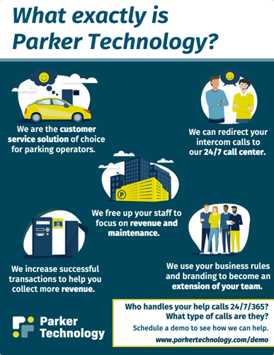 One of the largest benefits of the Parker Technology solution is the data that the platform provides. Parking owners and operators have instant access to metrics about how many calls were made on a given day, week, or month, and the technology also analyzes the reason for each call. This is important information that can be used to improve operations and customer service.