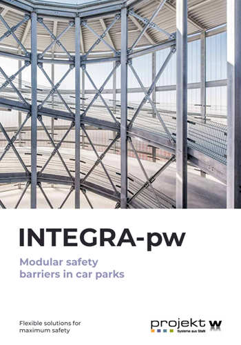 Das von dem Projekt w entwickelte und bewährte System INTEGRA-pw vereint Personen- und Autoanfahrschutz in einem Produkt. Konventionelle Absicherungen werden dadurch überflüssig. Durch die gleichzeitige Druckentlastung der Dorne ist ein zusätzlicher Handlauf nicht erforderlich , sondern optional erhältlich. Kommt es zu einem Crash, garantiert INTEGRA-pw die Lastenableitung in die bauseits vorhandene Unterkonstruktion. Die maximale Stützenfreiweite beträgt 5.506 mm, was die Kompatibilität mit den Systemen aller Parkhaushersteller in Europa gewährleistet. INTEGRA-pw bietet gegenüber marktüblichen Systemen entscheidende technische, wirtschaftliche und nachhaltige Vorteile . Darüber hinaus werden die gesetzlichen Anforderungen der Landesbauordnungen der Bundesländer sowie die geltenden europäischen Normen für Anfahrschutzsysteme in Parkhäusern erfüllt.