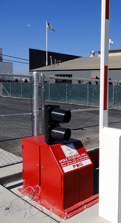 Spike Systems manufactures our one of a kind high security crash barrier gates with different options in length depending on your needs. We provide options for operation from the left or right hand side. These surface mount motorized barriers include 8″ red/yellow traffic signal, and all accessories.