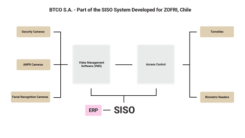 The installed system for ZOFRI is called SISO. It is the abbreviation of Sistema Integrado de Seguridad y Operaciones – or Integrated Security and Operations System. With its solution, BTCO created a business intelligence system that can handle virtually everything within ZOFRI. This includes enterprise resource planning systems (ERP), CCTV cameras, the access control communications network, and the video management software (VMS).