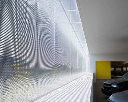 Architectural mesh offers effective sun protection to car parks. The horizontal wires of the mesh façade act as a light barrier, helping to maintain a comfortable temperature within the parking garage.