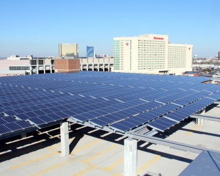 The structure features a number of unique elements, including metal screens with colored lighting, an LED digital billboard,and a large solar panel array that will help significantly off-set the energy use within the garage. This space also features driver-friendly incentives, such as an EZ Pass reader to provide patrons with a convenient alternative to cash or credit card payments, and six electric vehicle charging stations to promote and encourage sustainability.