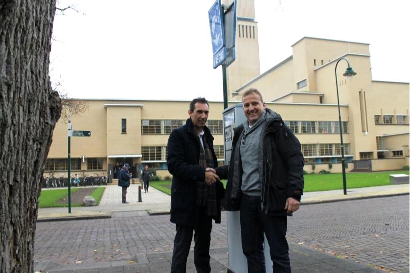 Martin Asschert, City of Hilversum (left) and Ronald Spruitenburg, EZS Parkeersystemen (right) are delighted about the successful cooperation.