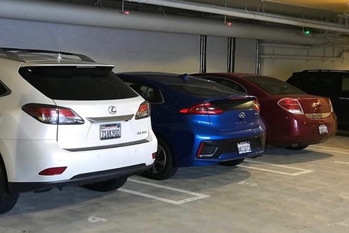 The Merge garage is one of the only subterranean parking garage in Carmel Valley. To enter the garage, visitors need to drive down a steep ramp and make a couple of tight right-hand turns. There is only one way in, one way out and no room to turn around.