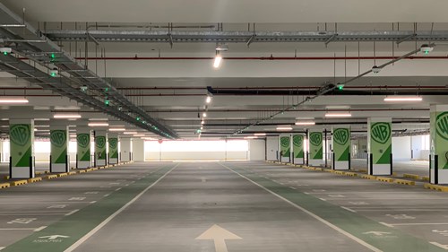 A total of 1250 ultrasonic, single-space sensors and 50 wayfinding signs have been installed in the visitors' parking garage with an additional 700 spaces available on the rooftop.