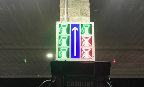 INDECT also designed and created a special LED symbol of a gas pump that is green when available and white with a red cross when occupied. Many other systems and technologies had been trialed prior to the installation, however, INDECT was chosen for its high reliability and accuracy.