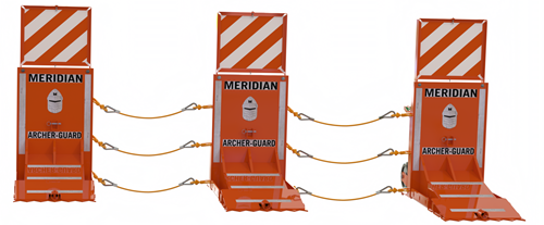 The NEW Meridian Archer-Guard protect people, workers, drivers and equipment with a truly modular solution that can fit any road work situation. Whether the system protects a flagger, a team of workers doing overhead work, ditch work, man hole work, the Archer-Guard works inside a tapper to add the layer of protection for every situation.