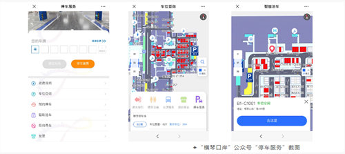 There are 2600+ parking spaces in the 3-story underground lots, so how can a parker find a parking space quickly? JIESHUN integrates self-developed online parking function modules and existing and newly developed customer function modules through open standard API interfaces, so that passengers can park their cars conveniently via mobile phone. Passengers open the "Hengqin Port" WeChat official account on their mobile phones and find "Parking Service" to realize the online parking functions such as online payment, parking space inquiry, parking space reservation, smart parking and reverse vehicle searching. Finding an available space and locating your vehicle after parking becomes easier than ever.