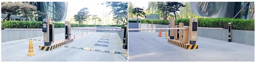 The parking lot is divided into a ground parking lot and a basement parking lot. The ground parking lot has four entrances and four exits, which supports simultaneous entering and exiting under the implementation of JIESHUN's parking ticketless controller.