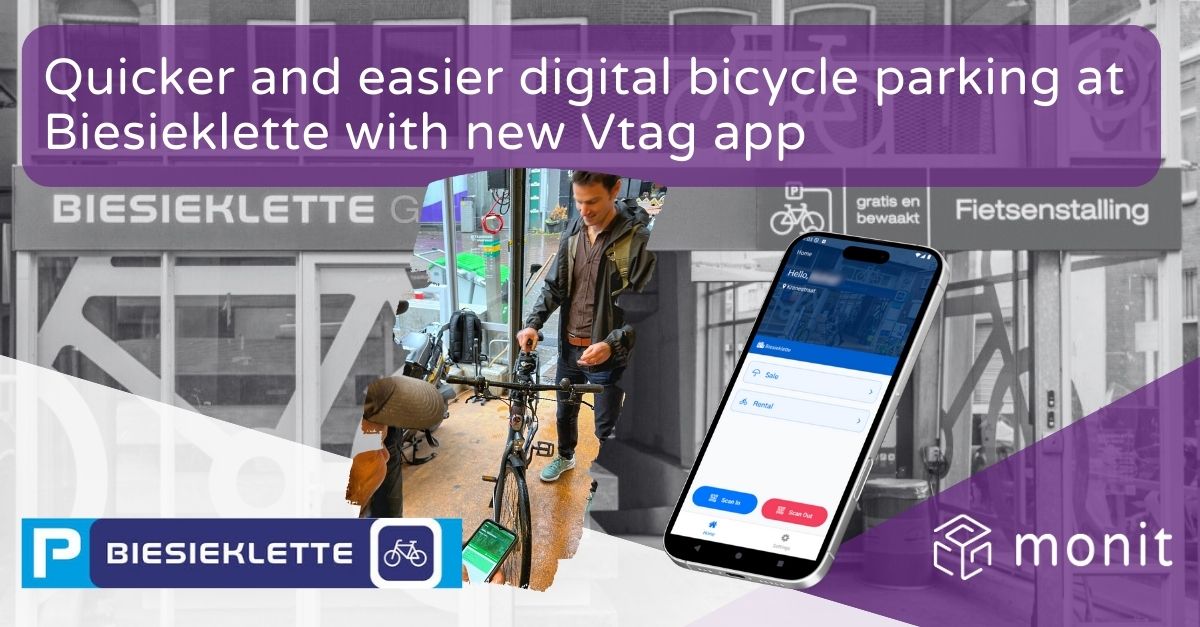 Biesieklette, the largest operator of managed bicycle parking facilities in the Province of South Holland, offers its customers and staff an improved user experience. This is thanks to the introduction of the upgraded version of Vtag, Monit Data’s service for fully digital bicycle parking management. With a new app and cloud service, scanning bicycles in and out has become quicker and more convenient.