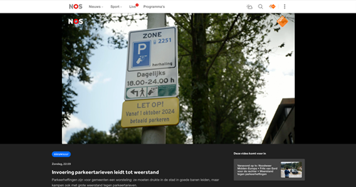 The Nieuwsuur item also showed that that municipalities are budgeting increasingly higher parking revenues. Adjusted for inflation, there has been an average 14% increase in the last five years. This increase does differ over the country. In some areas the parking fees are still free or remained stable, resulting in a net decrease compared to inflation rates. In popular cities such as Amsterdam, or tourist destinations as the beach town of Zandvoort the increases have been the largest.