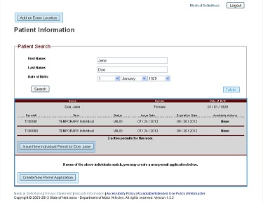 "Using technology to streamline an unwieldy process is a win-win-win," said Beverly Neth, Nebraska Department of Motor Vehicles Director. "Individuals with limited mobility get to make one stop at their physician's office, medical professionals get to utilize a government application to assist their patients and update their patient files with an electronic copy of the application, and the DMV gets to drastically reduce the application processing time and reduce costs associated with the program."