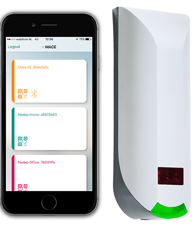 MACE is an acronym for Mobile Access Control Entities. With the introduction of this platform, Nedap responds to the global shift of smartphone credentials replacing physical cards. MACE supports Bluetooth, NFC and QR-codes to identify people using virtual credentials, which are stored in a MACE app. This app will be available for both iPhone and Android from IFSEC on. QR-codes are used as an alternative in situations where it is undesirable or impossible to use wireless communication technologies.