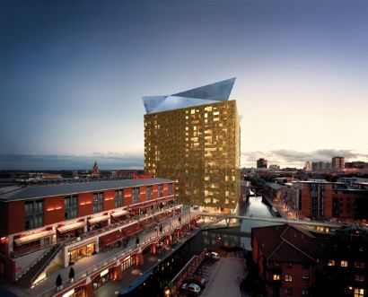 Impressive architecture designed by MAKE Architects in the new 23 storey development "THE CUBE. The lowest basements are 3 parking levels of the automated garage.