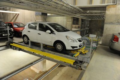 Specials: the cars will be parked directly on the concrete slabls not on pallets via 4 lifts and 6 shuttles. Car lengths differ with 5,25 m for 291 places and 4,00 m for 48 places. In some rows the cars will be parked in 2 rows behind each other. Three parking levels offer car heights of 1,60 m in 2 levels and 2 m in one level.