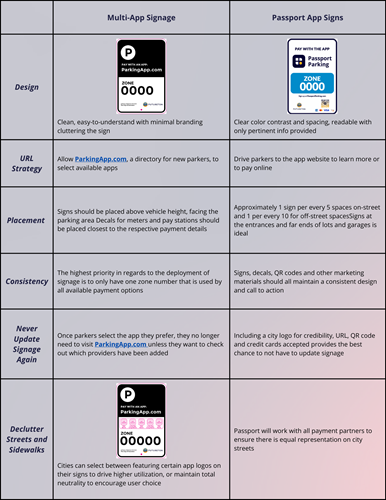 When it comes to parking management, cities should feel confident that their choice of vendor provides several options for signage, decals, and implementation. Passport prides itself on its expertise in on and off-street parking payment sign designs and best practices.
