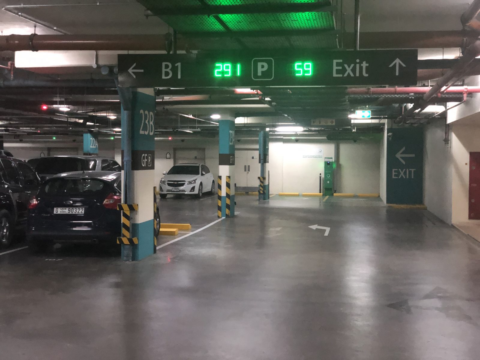The parking garage at Souk Madinat Jumeirah is a two-story building built underground. Souk Madinat Jumeirah chose Portier to ensure convenient parking for its visitors arriving by car. Portier parking guidance displays were integrated into backlit signs showing the availability of parking spaces in different locations of the parking facility. These signs direct driving visitors smoothly into an available parking space. Portier’s ultrasonic space-specific parking sensors were installed on top of 479 parking spaces showing clearly an occupied or vacant parking space by red or green LEDs. In this location, our ParkSensor Twin was chosen to provide maximum visibility for the drivers. Twin provides the option to extend the LED light e.g. over the driveway in locations where garage structures block the direct view to the sensor located on top of the parking space.