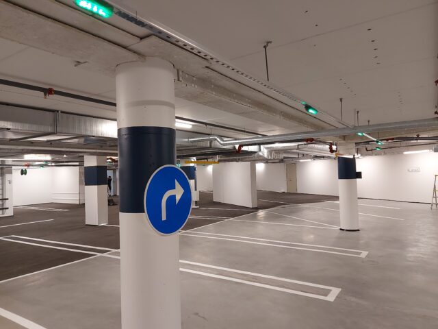 Aimo Park Sweden is operating a two-story parking facility in Haga Norra, which serves residential parking as well as Bilia’s customers. The facility has Portier Sonic space-specific sensors as well as Portier dynamic parking guidance displays installed guiding drivers directly to available parking spots.
