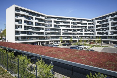 In Magdeburg, a 73-metre-long carport with anthracite grey square tube supports and our sustainable Green Roof Light was realised. The result: robust, aesthetically and ecologically sensible.