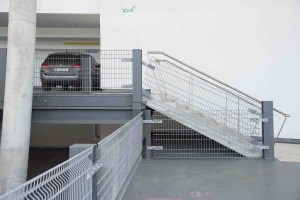At the base of the building is the high rise car park with 265 parking spaces. The car park has six mezzanines with pitches up to 2.60 meters and a clear height of 2.40 meters. In order to ensure the safety of those using the car park, Projekt W was commissioned to install the INTEGRA 943 safety barrier throughout the facility.