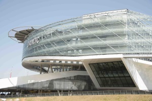 The Austrian Automobile, Motorcycle and Touring Club in Vienna commissioned the construction of its new headquarters to Pichler & Traupmann Architekten. The result was a mobility center on nine levels with a usable area of approximately 21,000 m³ for around 800 employees who had previously worked in five different locations. In addition to creating one unified space to house all of the employees, the façade of the new ÖAMTC headquarters was designed in the form of a rim with five spokes.