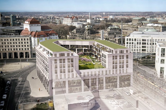 The Haus Postplatz car park will provide 160 parking spaces on two levels and will be open around the clock from Monday to Sunday. Haus Postplatz has a total of six floors above ground and a top storey with a total rental area of 18,300 m². Retail outlets and eating places will be located on the ground floor and first floor, together with a fitness suite and offices on the second floor. High-end rental apartments are planned for the 3rd to 5th floors. On the top floor, penthouse apartments with a unique view of the Zwinger1 will add the finishing touch to the Haus am Postplatz.