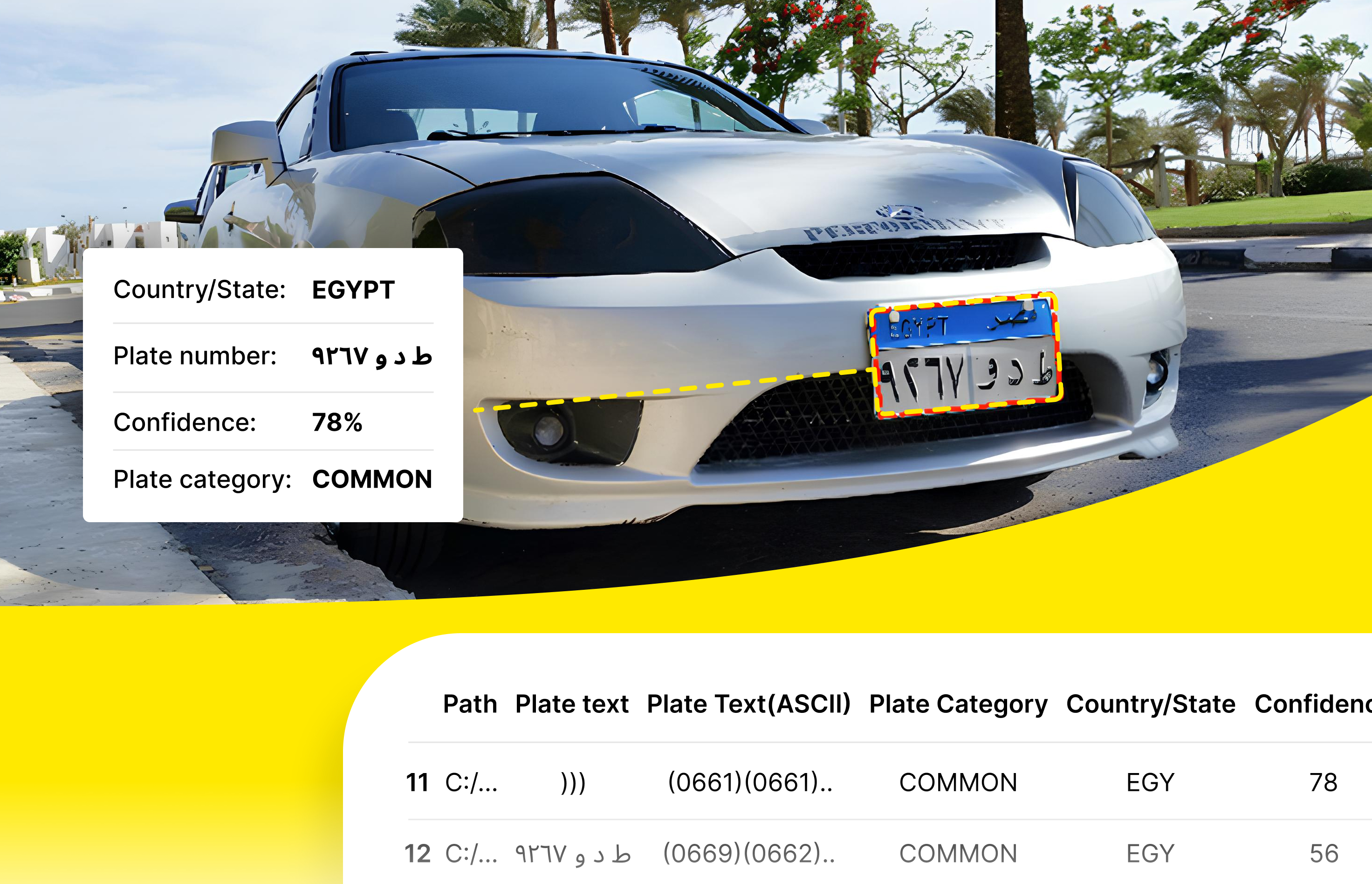 Our ANPR engine proved its capabilities by accurately recognizing Egyptian license plates, including Arabic and Latin characters, plate color, category, country and assigning confidence scores to each result.