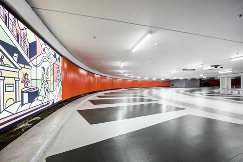 In collaboration with the Dura Vermeer - BESIX combination, JHK Architects created the design for the parking garage under the Lammermarkt. The design is an architectural masterpiece under the ground and combined the functionality and the mode of construction in an elegant way, with respect to the monumental city center surrounding. The cylindrical form of the garage is not only the basis for a user-friendly parking garage, the compactness of the volume also minimizes interference with the monumental buildings surrounding it. To realize the visual effect of the designed carpark space, high quality carpark flooring and wall systems with tailored color shades are required.