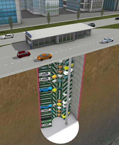 One solution to the anti-terrorist parking challenge is an underground automated parking system (APS) such as the Skyline S-Park. Requiring a diameter of only 59 feet (18 m), the S-Park APS easily fits well within the width of many urban streets - minimizing the challenge and cost of rerouting services. With a volume as much as 65% smaller than a conventional underground parking garage, the APS requires significantly less excavation cost and space. In fact, modern earth boring techniques can substantially reduce the cost, time and inconvenience of excavations on major urban thoroughfares for the installation of multiple underground APS.