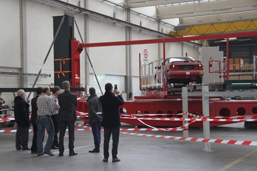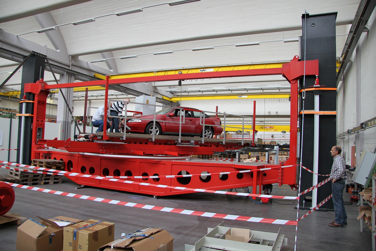 On 23rd and 28th November the company Skyline Parking from Winterthur invited investors and visitors from near and far to the testing hall in Arbon in the Canton Thurgau. There the functionality of the conveyor system for our first "auto tower", a fully automated parking garage was demonstrated. The six-meter lift column elements with the twelve-meter long rail, cart and turntable offered an impressive image. After the test phase, the entire conveyor system will be installed in the 25 meter high tower.