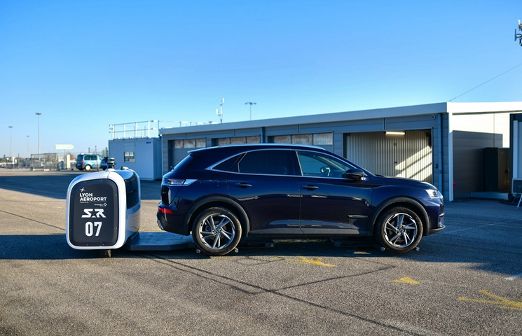 The AGV robot “Stan” equips with a platform that lifts the vehicle’s 4 wheels, and automatically transports the vehicle indoors or outdoors. This robot started commercial operation in 2018 in a parking garage at Lyon-Saint Exupéry Airport in France and has subsequently gone into service at Gatwick Airport in London.