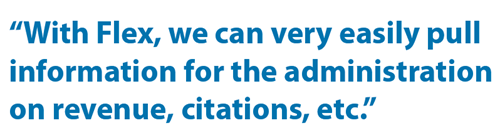 “There are so many components to Flex that make it so easy to manage your revenue, citations, aging of citations, receivables, permits, access control and events. Having all these processes streamlined into one system makes it so much easier to standardize processes and train employees,” Thompson said. “I can’t imagine not having Flex in our system, it’s so integrated into what we do. We live and die by our Flex system.”