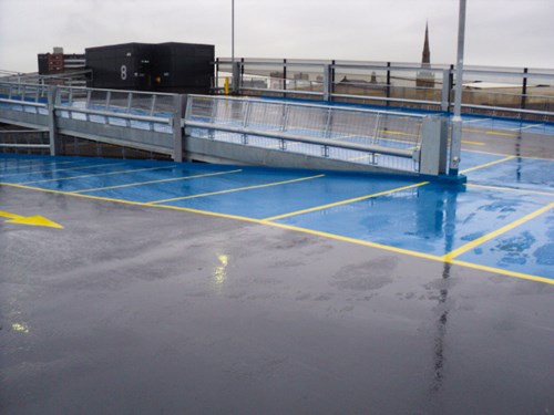 A rigorous specification was set out for a waterproof deck coating to the top decks of the car park, one very important aspect of which was compliance with BS EN 1504-2, specifically, the ability to deal with dynamic cracking of up to 0.3mm at -20°C.