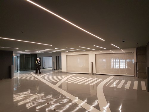 A lift positioned at the end of the system transports the shuttle vertically to each parking level. There the car, which is on a longitudinal pick-up transport system (LAT), is horizontally moved by shuttle to the empty parking space and deposited by the LAT. There are four transfer areas in the Torre Reforma to enter and exit as well as four shuttles, which move and park the vehicles independently of one another directly onto the concrete shelf. This enables a throughput rate of around 95 cars per hour.