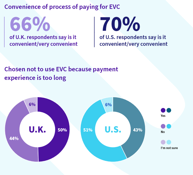 The convenience of the payment process for public electric vehicle charging is generally satisfactory with 70% of U.S. and 66% of U.K. users finding it convenient, but there is room for improvement. |