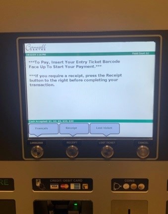 - Flexible Payment Options: Visitors can pay using chip & PIN, contactless credit cards, Interac debit cards, or smartphone payment apps like Apple Pay at the parkade exit. Alternatively, customers can pay at any of eight pay-on-foot stations located in the Cornwall Centre or at a central cashier terminal.