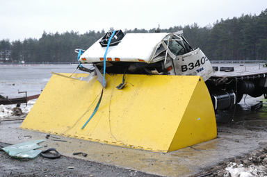 Travelling at 84 kph, the truck didnt live to see another day as the Roadblocker brought it to a complete halt with nil penetration, completely obliterating the cab, front chassis and engine bay.