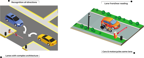 The Splitter solution, like other products offered in the parking sector, allows systems to have more than one camera on the same lane, transparently for the PMS/PARCS system. This solution leads to an increased accuracy rate by combining front and rear cameras, as well as allowing the adaptation of the ALPR system to complex lanes.